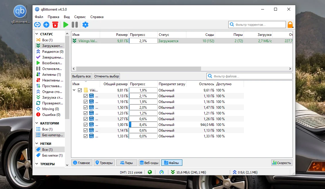 - Скачивание файла. Торрент-клиент соединяется с другими участниками сети и начинает скачивать файл. Файл разделен на множество маленьких частей (обычно 256 КБ — 2 МБ), которые скачиваются независимо друг от друга. Это позволяет эффективно распределить нагрузку между участниками сети и увеличить скорость скачивания.