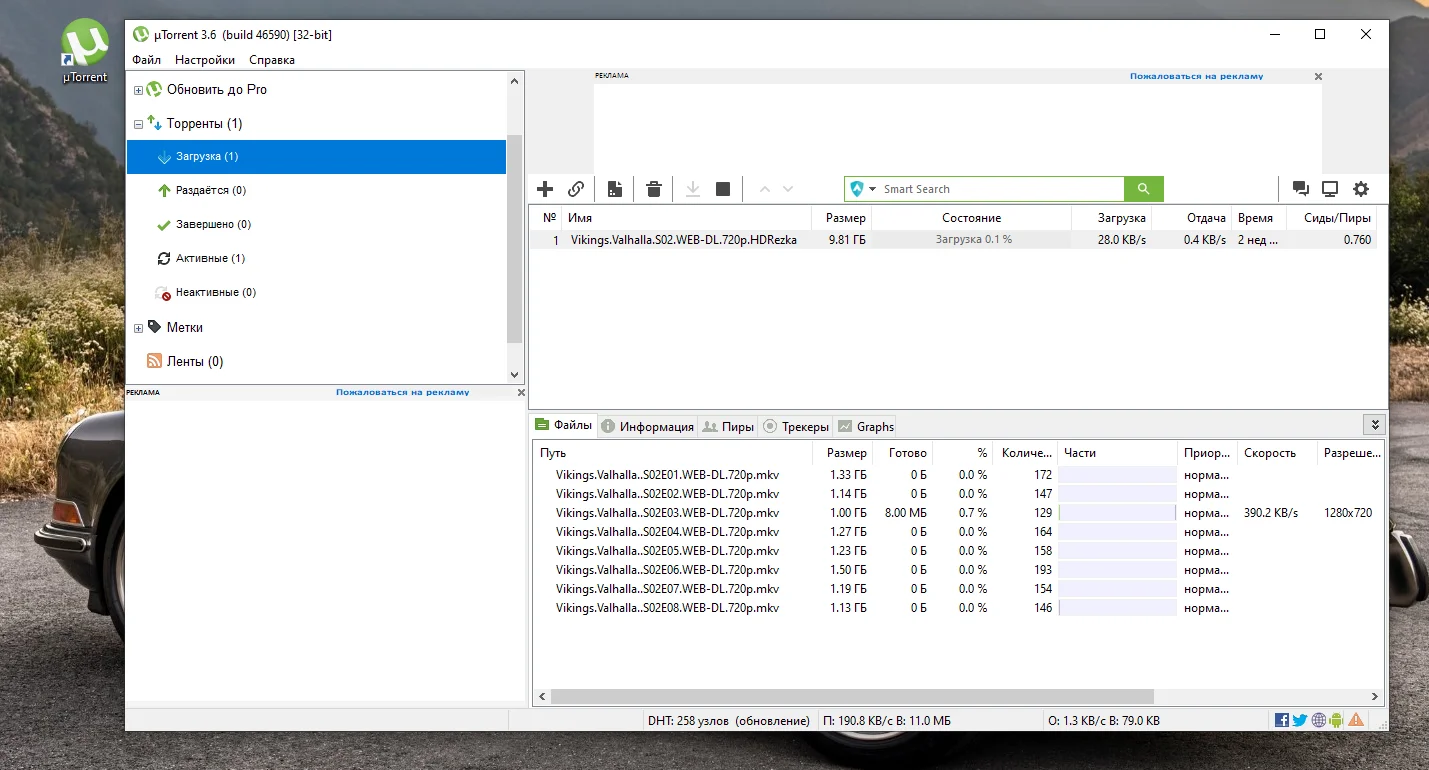 В принципе загрузка файлов с торрент-обменников не является первой и последней возможностью программы µTorrent. После небольшой настройки можно с лёгкостью смотреть фильмы через торрент не скачивая. Само собой, есть возможность использовать портативную или вовсе веб-версию программы. К минусам стоит отнести в бесплатной версии наличие рекламы, которую можно отключить.