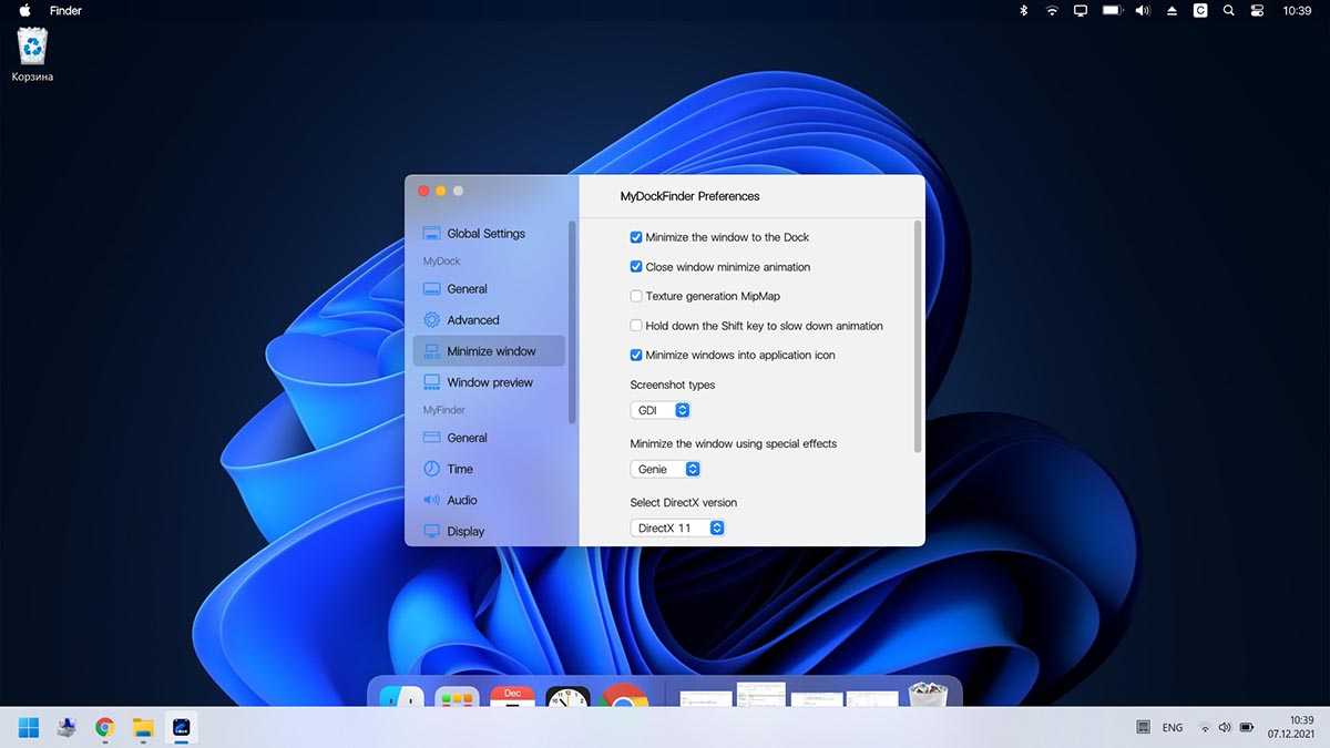 9. В разделах Minimize window и Window Preview настраивается поведение окон и приложений в док-панели. Можно настроить привычную для Windows группировку окон или скрывать их в иконку приложения, как в macOS.