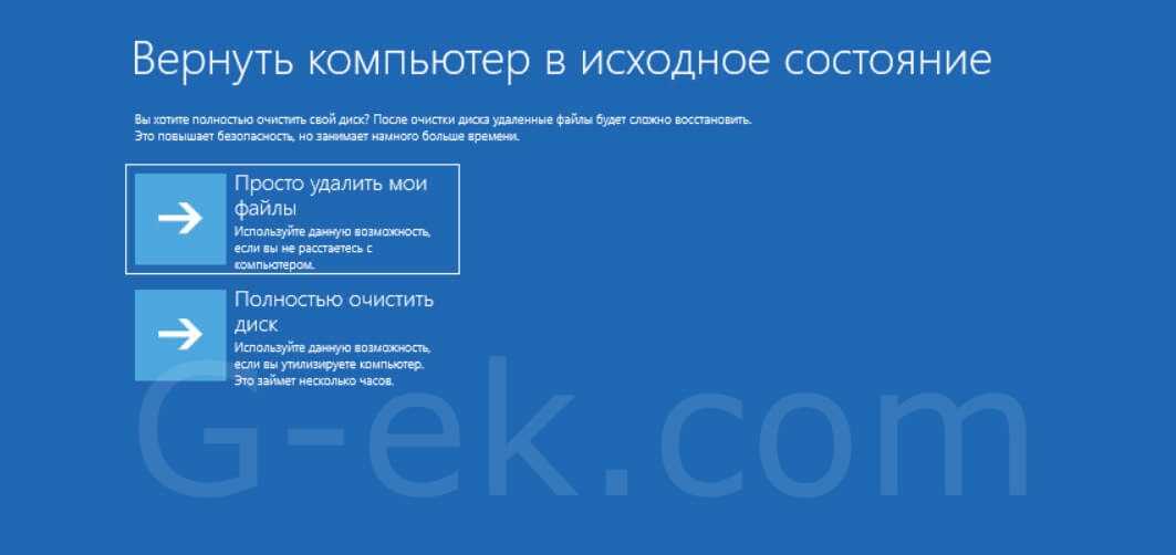 Выберите вариант «Просто удалить мои файлы» или «Полностью очистить диск».