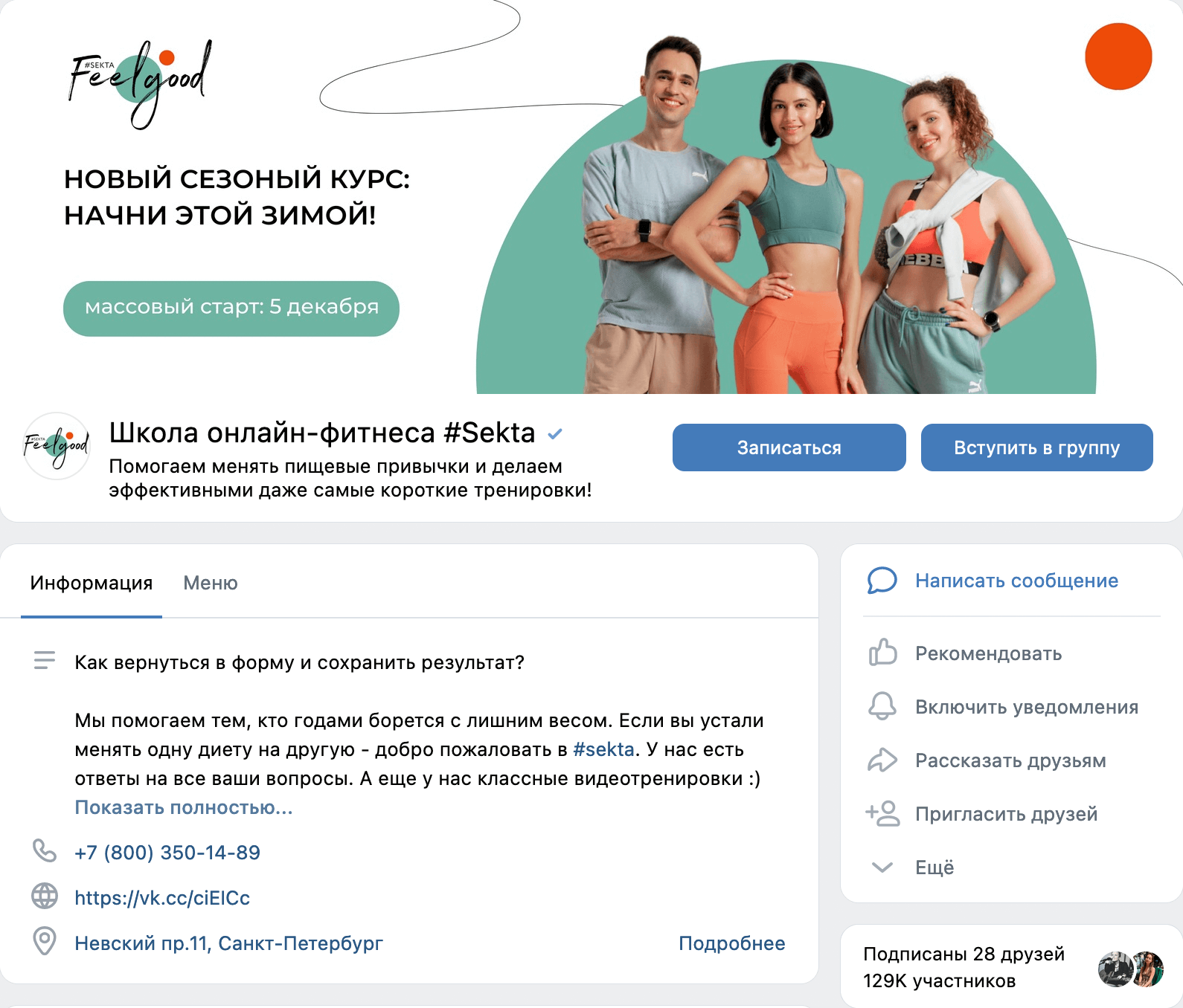 Школа онлайн-фитнеса Sekta брендировала страницу «ВКонтакте» под сезонную программу