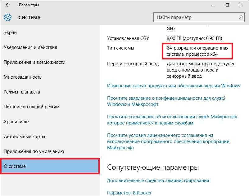 Среди нескольких параметров, пользователь сможет обнаружить строку «Тип системы», именно в ней указывается разрядность.