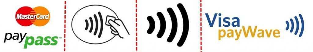 Для того, чтобы выполнить бесконтактный платёж, надо в первую очередь убедиться поддерживает ли терминал бесконтактные платежи или нет. Для этого на них должен присутствовать один из этих логотипов (или несколько сразу):
