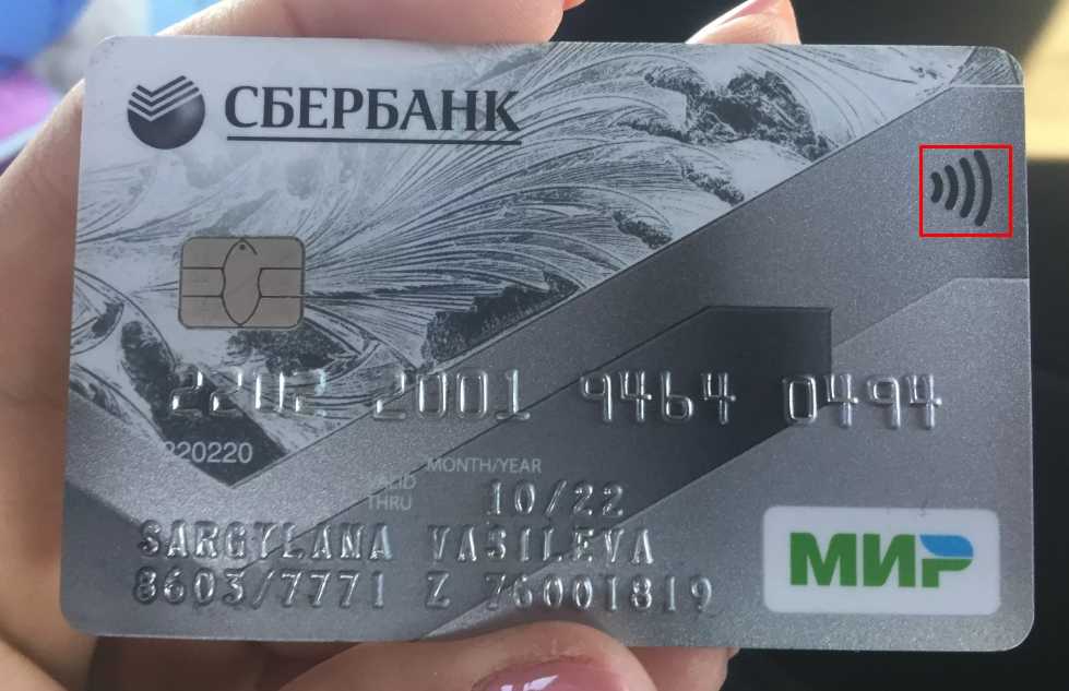 На терминале и на карточке должны быть соответствующие символы, напоминающие повернутый на 90 градусов значок Wi-Fi — они информируют о возможности бесконтактного расчета.