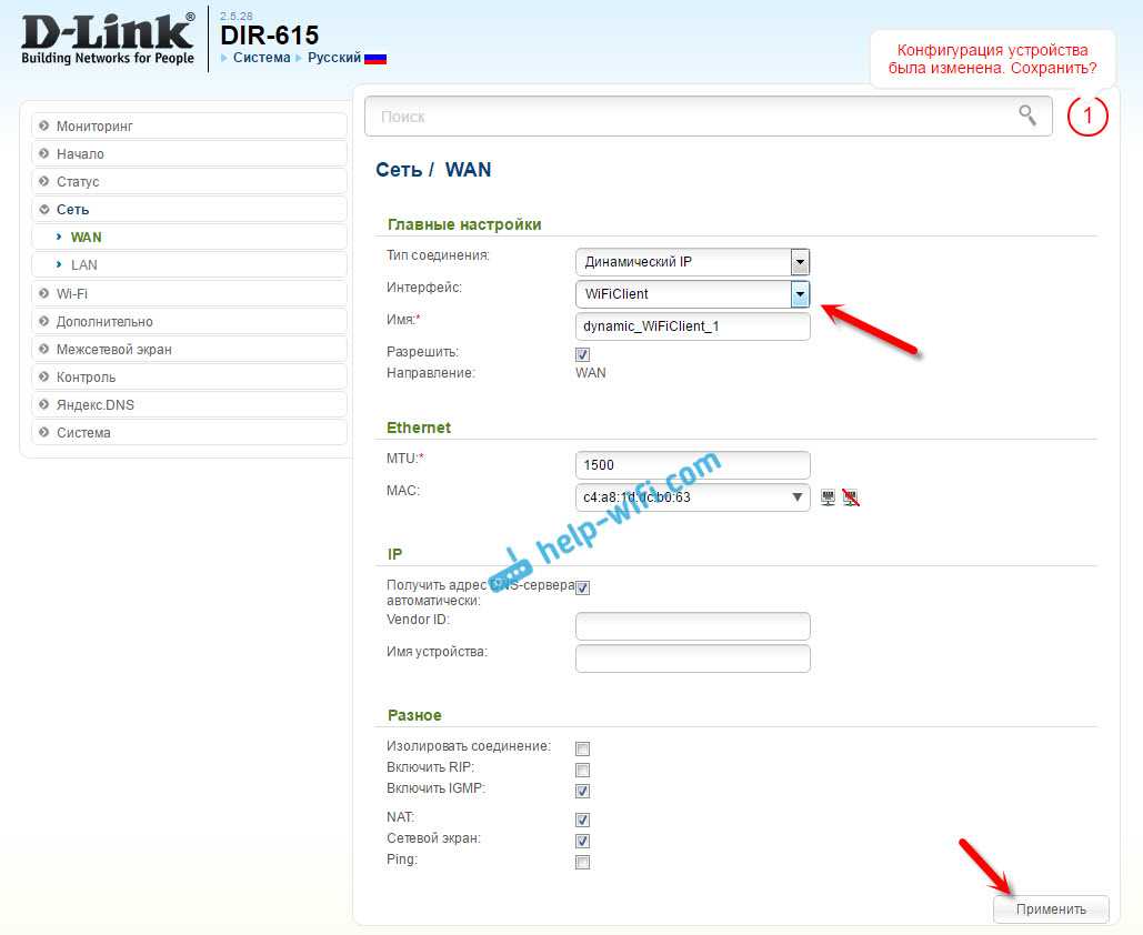 Основная часть уже выполнена — создано подключение в беспроводной сети Wi-Fi и с ее помощью уже есть доступ к Интернету. Смысл DIR-615 в режиме повторителя заключается в том, чтобы одно устройство сразу же переключилось на основное.