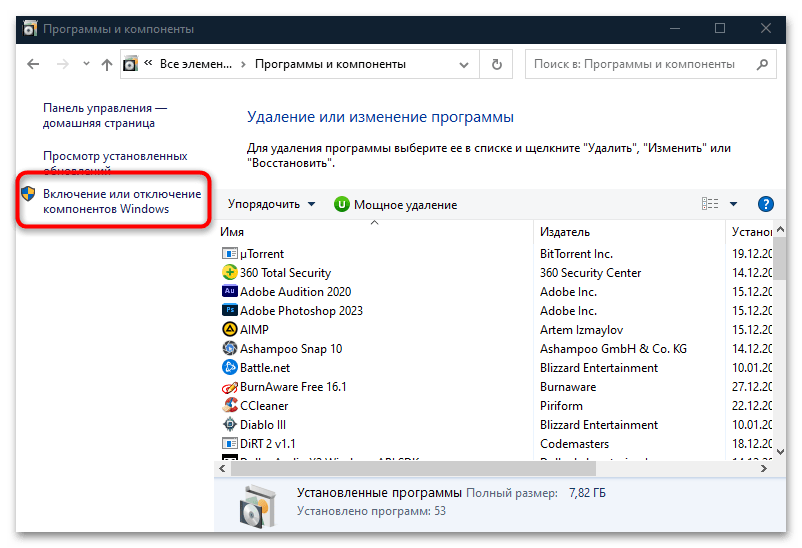Сначала используйте наиболее простой и безопасный способ – через «Панель управления» и раздел с программами и компонентами: