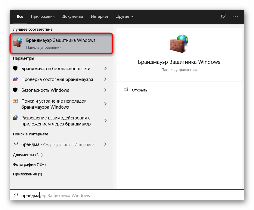 Временное отключение средств защиты операционной системы — еще один простой метод, позволяющий проверить, сказываются ли как-то эти компоненты на трудностях с установкой обновлений Дискорда. Для начала займитесь стандартным брандмауэром Windows или дополнительным межсетевым экраном, если тот был установлен вручную. Используйте меню управления для быстрого отключения действия данного компонента.
