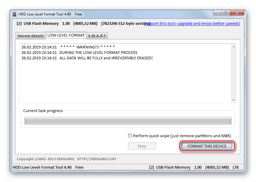 Урок: Как выполнить низкоуровневое форматирование флешки