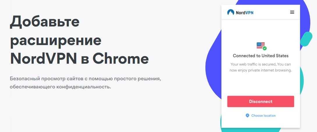 NordVPN для браузера отличается самыми мощными алгоритмами шифрования, предлагает широкий выбор функций, надежную защиту от вредоносного ПО. Доступен для Chrome и Firefox.