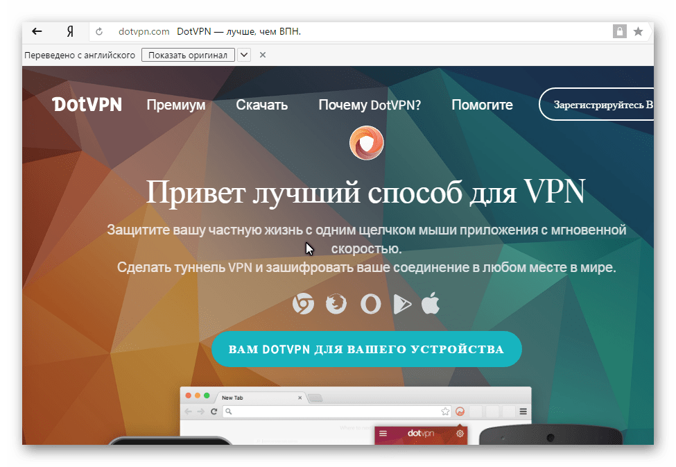 ExpressVPN для браузера предлагает наивысшую скорость в мире, безлимитный канал и трафик, переподлючение и смену IP без разрыва соединения. Смотрите видео без буферизации. Работает в Chrome, Safari, Firefox.