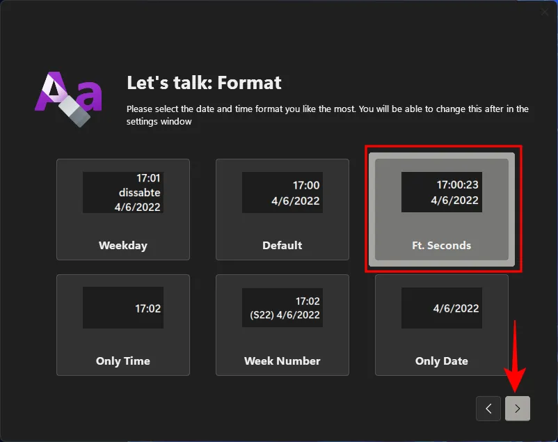 Теперь выберите Ft. секунд и нажмите на следующую стрелку.