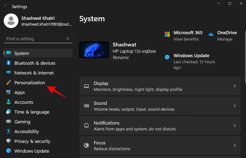 Нажмите , чтобы открыть настройки. Затем нажмите «Персонализация » на левой панели.