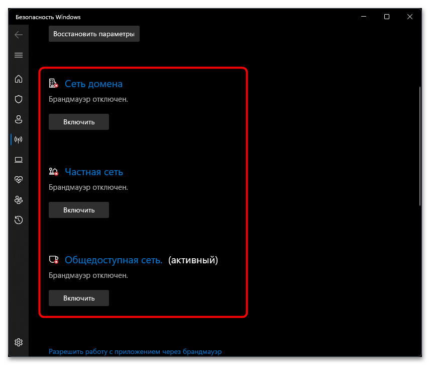 - После применения параметров брандмауэр в Windows 11 перестанет работать.
