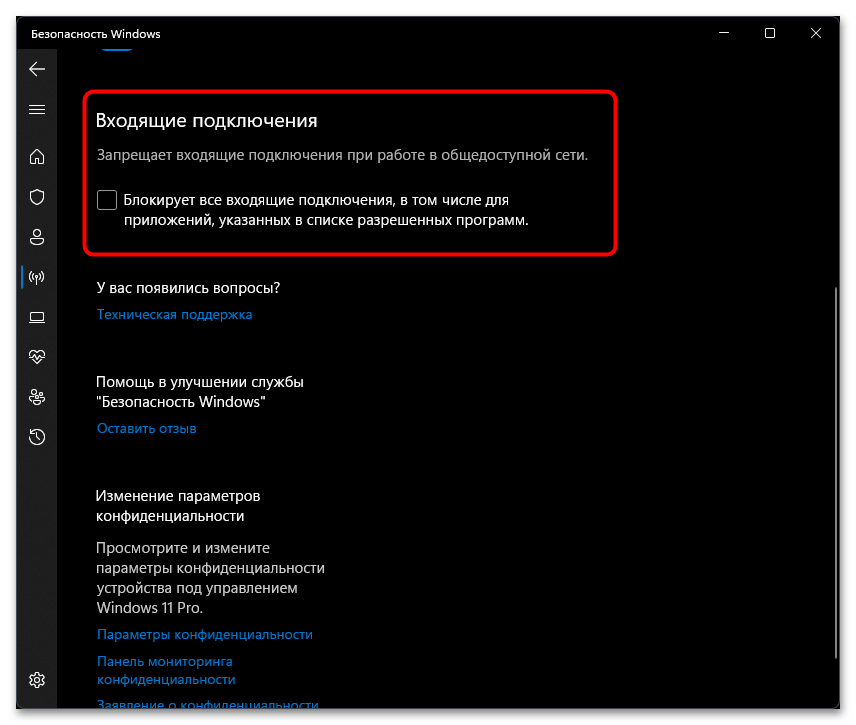 Важно, чтобы брандмауэр Microsoft Defender был включен, даже если уже включен другой брандмауэр. Он защищает вас от несанкционированного доступа