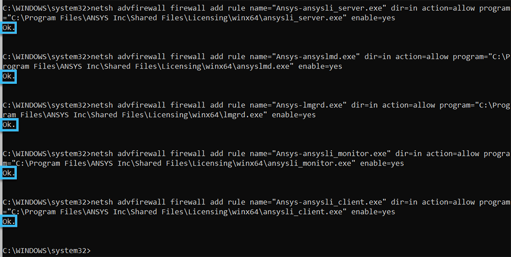 Запустив командную строку от имени администратора, вы можете использовать следующие команды для разрешения доступа в сеть для программы или открытия определенного порта.