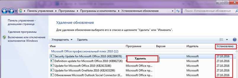Наиболее сложный вариант разрешения системного конфликта. Необходимо посетить Центр обновления Windows и удалить установленные за последние дни обновления. О том, как это можно сделать: