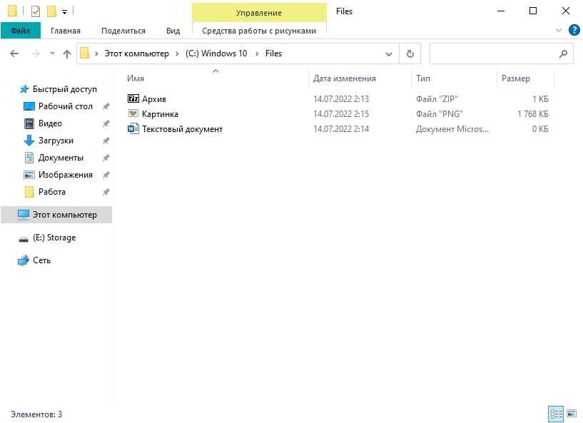 В стандартном режиме файловый обозреватель Проводник отображает только имя файла и его тип. Выглядит это следующим образом:
