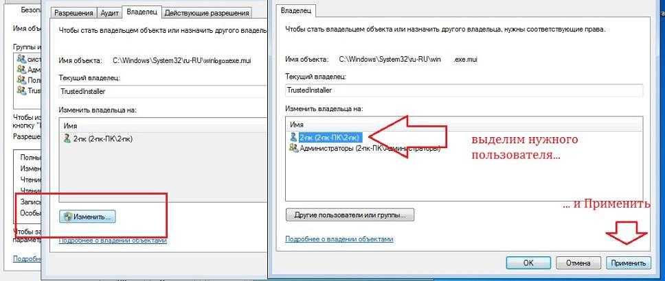 Новое окно открыло список тех, кто что может. Мы, как администраторы, однако, полного доступа к файлу не имеем. Оно забронировано за . Перейдём во вкладку Владелец