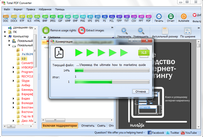 Конвертирование документа PDF в Excel с помощью сторонних приложений, конечно, значительно проще. Одной из самых удобных программ для выполнения такой процедуры является Total PDF Converter.