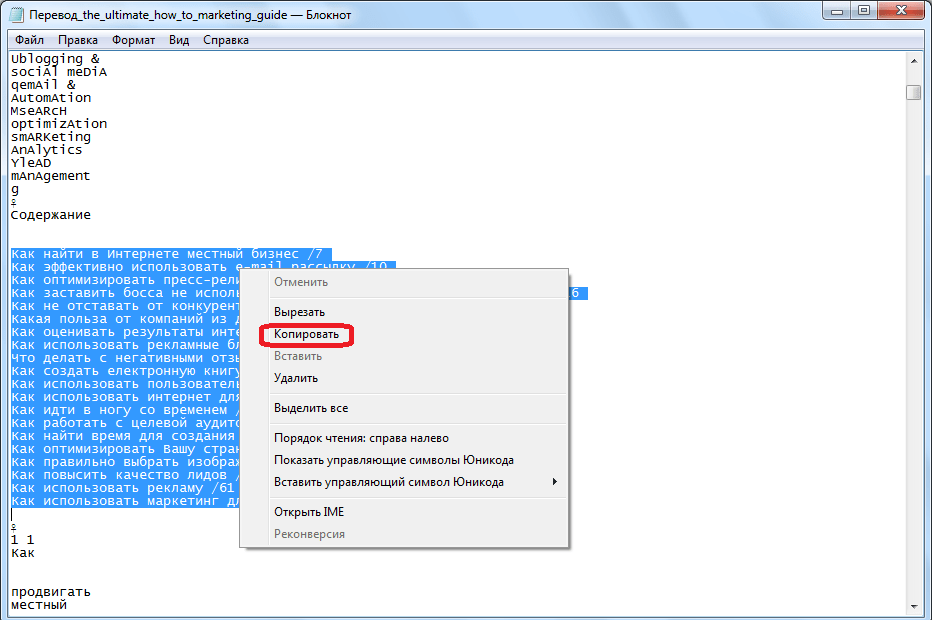 - Остается выделить нужную область, после чего кликнуть по ней ПКМ и воспользоваться функцией «Копировать».