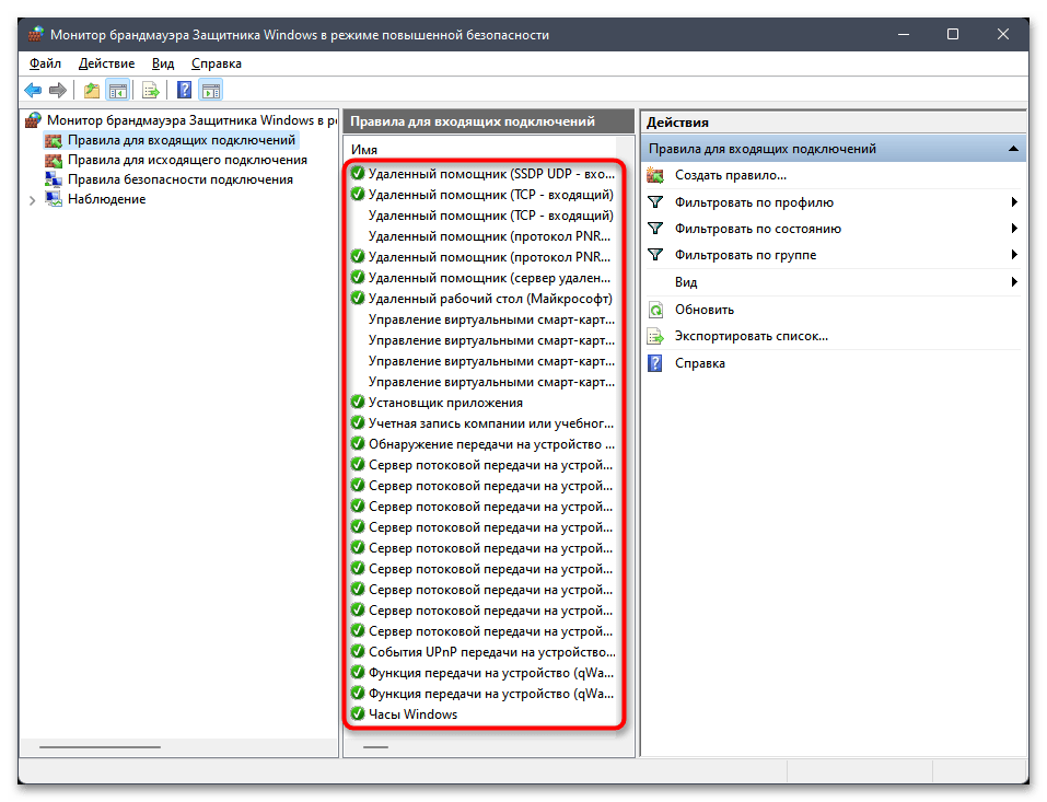 Через межсетевой экран в Windows 11 проходит как входящий, так и исходящий трафик. При помощи правил брандмауэра осуществляется разрешение или запрет на обмен информацией, которая отправляется или приходит в конкретной сети от определенного источника. В брандмауэре уже существует большой список правил, при помощи которых осуществляется корректное функционирование операционной системы. Далее предлагаем остановиться на том, как самостоятельно добавить правило, если это нужно для программы или порта.