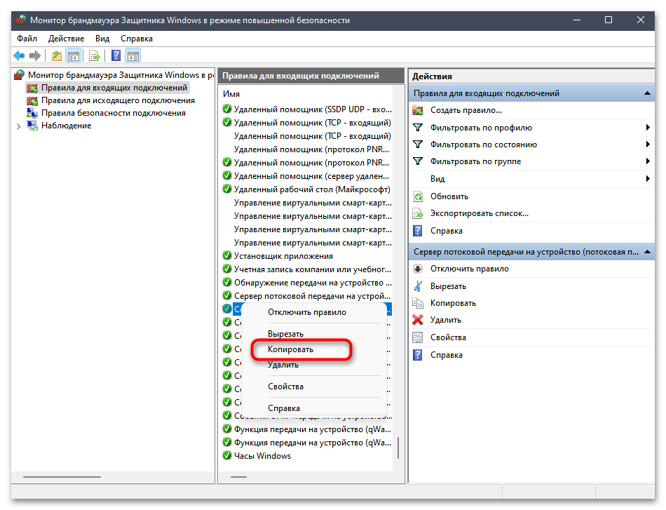 Созданное правило можно скопировать и вставить в этот же список, затем внести некоторые изменения — например, изменить программу для действия.