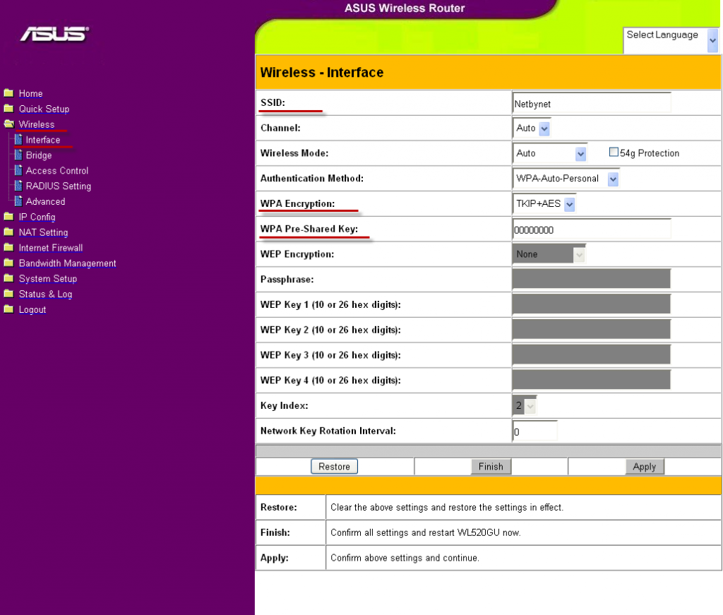 Если вы уже настраивали Wi-fi роутер ASUS RT-G32, то должны знать, что наиболее защищенным является тип шифрования WPA/WPA2. Поэтому в поле «Authentication Method» необходимо выбрать значение «WPA-Auto-Personal».