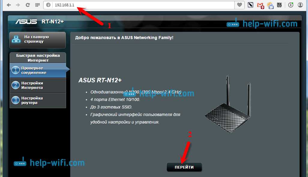 После того как все подключили, открываем любой браузер, и набираем адрес 192.168.1.1. Сразу должны открыться настройки. Если этого не происходит, или что-то у вас пошло не так, то гляньте инструкцию по входу в настройки. Мы должны увидеть мастер быстрой настройки. Для начала нажимаем кнопку Перейти.