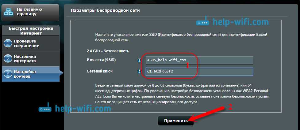 На следующей странице нам нужно в поле Имя сети (SSID) указать имя вашей Wi-Fi сети, а в поле Сетевой ключ задать пароль для подключения к этой сети. Этот пароль так же где-то запишите.