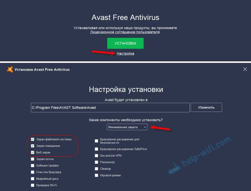 Поэтому, попробуйте скачать Avast заново с официального сайта и установить его повторно. Только в процессе установки отключите все лишние компоненты. По сути, они никому не нужны, только систему грузят. И не исключено, что из-за одно из этих компонентов перестает работать интернет.