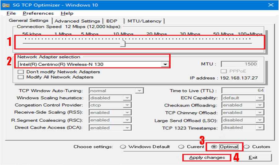 Принцип работы у TCP Optimizer такой же, как и у выше описанных приложений. Определяет и выставляет максимальные значения настроек (MaxMTU) на ноутбуке.