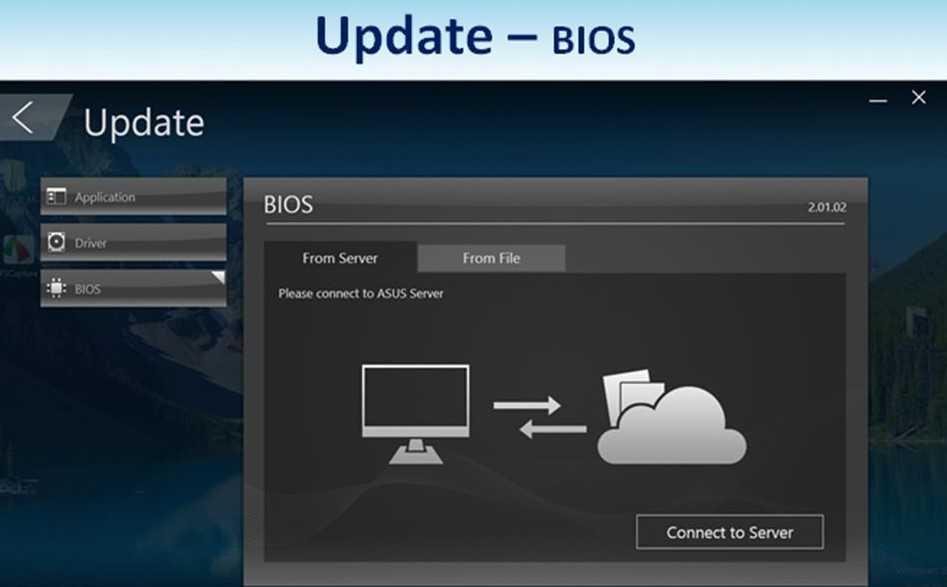 Этот способ гораздо проще. Для этого понадобится лишь скачать файл обновленной версии BIOS и программу прошивки для ОС Windows. Как правило, у каждого производителя существует для этих целей свой софт. Например, у компании Asus такая программа называется AsusUpdate. Необходимо установить ее, запустить и выбрать пункт «обновление из файла», указав ранее скачанный файл. Хотя эта программа умеет и самостоятельно находить свежие версии BIOS и устанавливать их в автоматическом режиме.