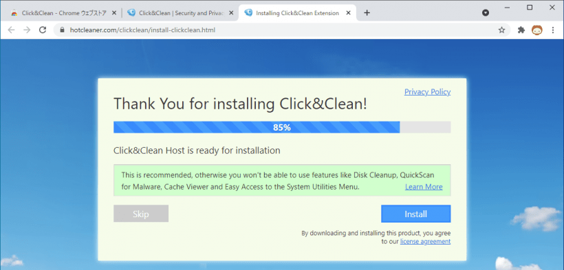 Либо появится окошко (в случае с тем же Google Chrome), где Вам предложат поставить, так называемый Click&Clean Host.