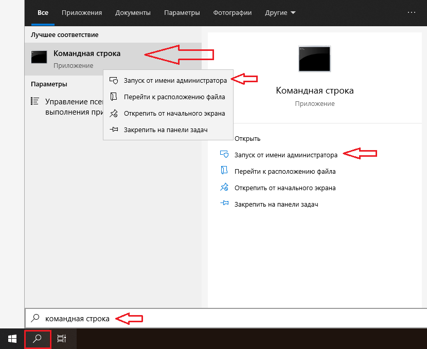 Нажмите «Пуск» и запустите командную строку от имени администратора.
