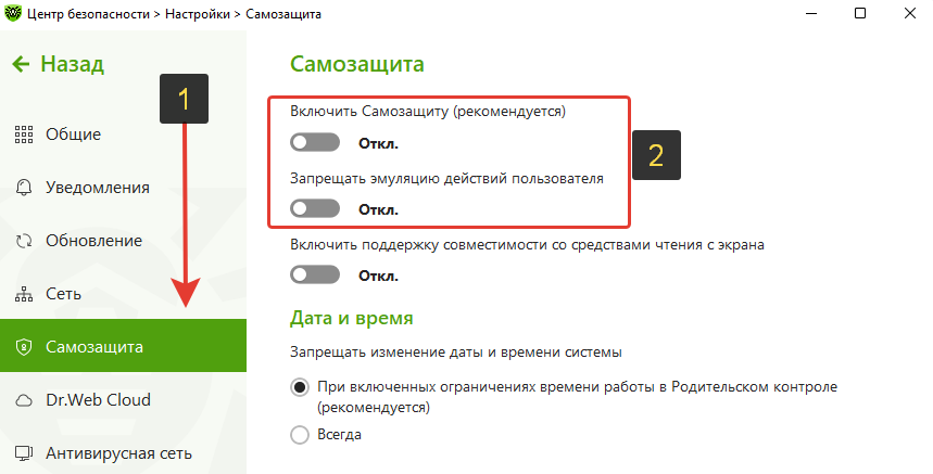 Как отключить самозащиту антивируса Доктор Веб при удалении