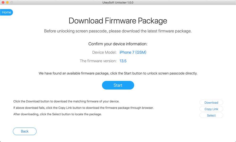 Нажмите кнопку «Пуск», чтобы начать разблокировку забытого пароля iPhone, и снова нажмите «Начать разблокировку», чтобы подтвердить операцию.