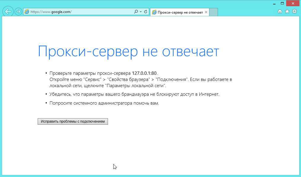 Все производимые настройки, о которых мы рассказали, должны помочь устранить ошибку, но если этого не случилось, то нужно деактивировать прокси.