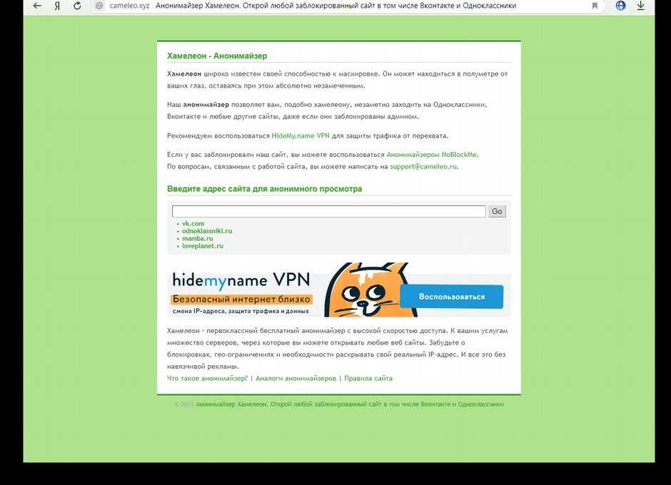 Что касается анонимайзеров, то это веб-сервисы, в которых для отображения заблокированного сайта достаточно ввести его адрес. Это решение для тех, кому нужно несколько посещений своего ресурса. Принцип работы с ними прост: