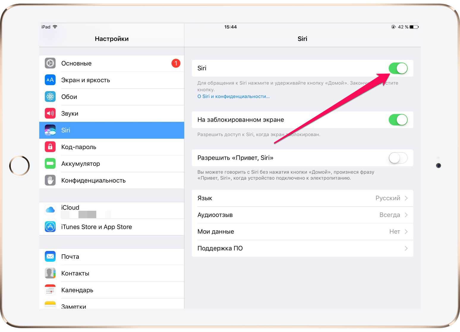 Перед тем как начать пользоваться Siri, нужно её включить и настроить: