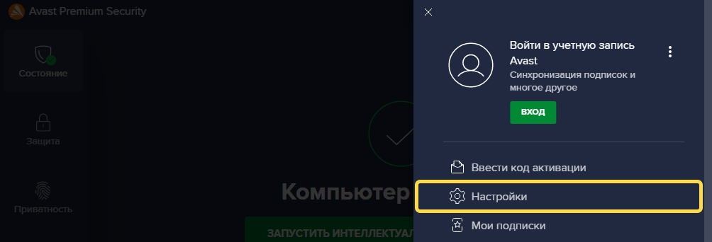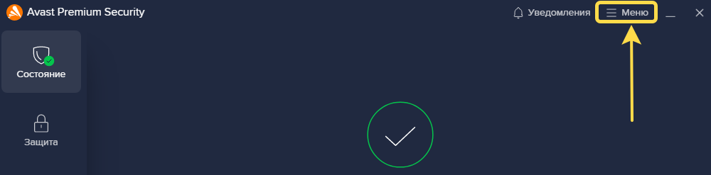 Откройте окно антивируса любым способом, например, с ярлыка на рабочем столе и перейдите в меню.