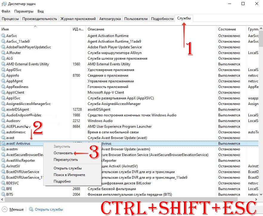 Лучше всего отключать Аваст до перезагрузки компьютера, тогда исключена ситуация, что антивирус включится слишком рано или же вы просто забудете его обратно включить, когда завершите инсталляционные процессы.