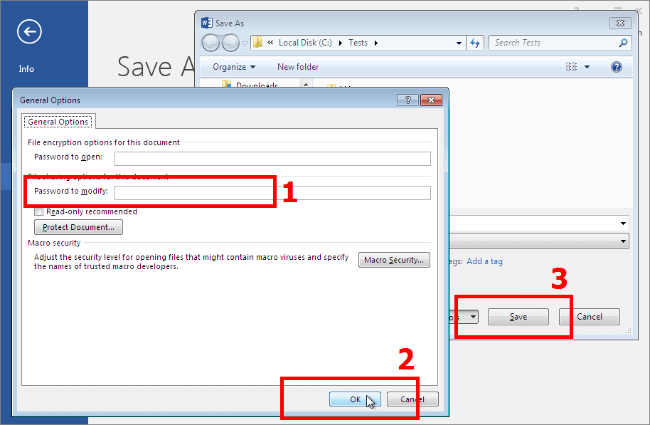 Запрос «Пароля на Запись Изменений» в Microsoft Word 2016-2021