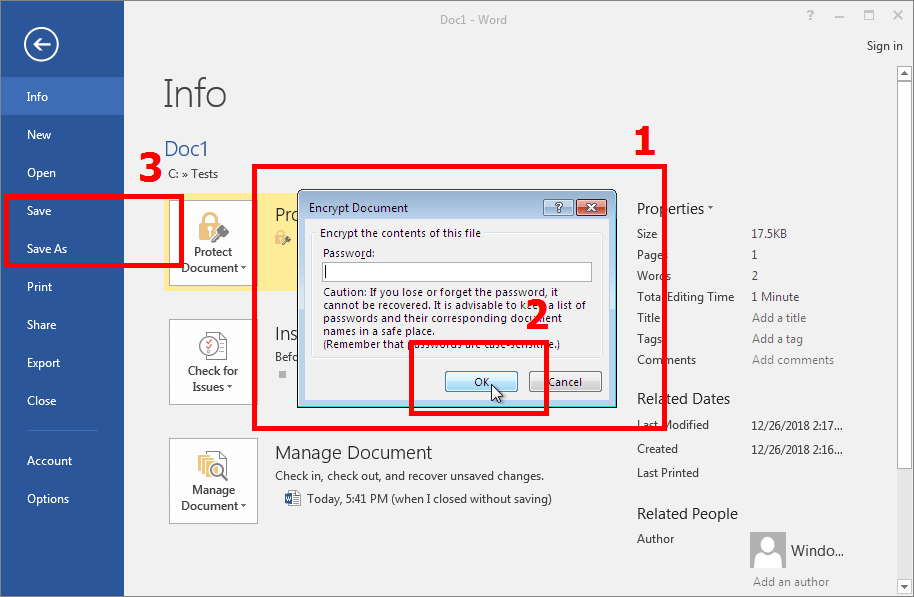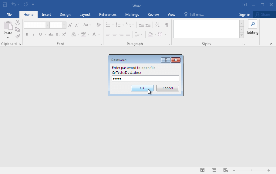 Запрос «Пароля на Открытие» в Microsoft Word 2016-2021