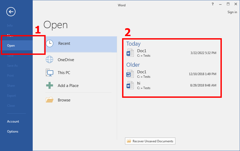 1. Запустите Word, перейдите в раздел «Открыть» («Open») и просто кликните по нужному файлу. Так вы выберете его и запустите процесс открытия
