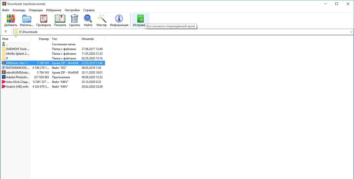 Запустите программу WinRAR. Найдите поврежденный архив на HDD через меню Файл – Открыть. Кликните по ярлыку файла левой кнопкой мыши и нажмите кнопку Исправить на панели управления.