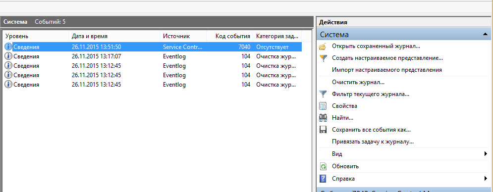 - Открыть журнал событий (как? — рассказано в самом начале).