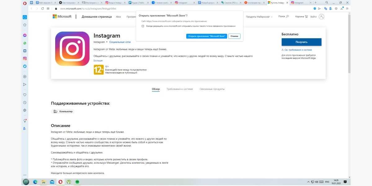 Откроется официальное приложение Инстаграма* от Microsoft Store. Его тоже можно использовать, если вам так удобно.