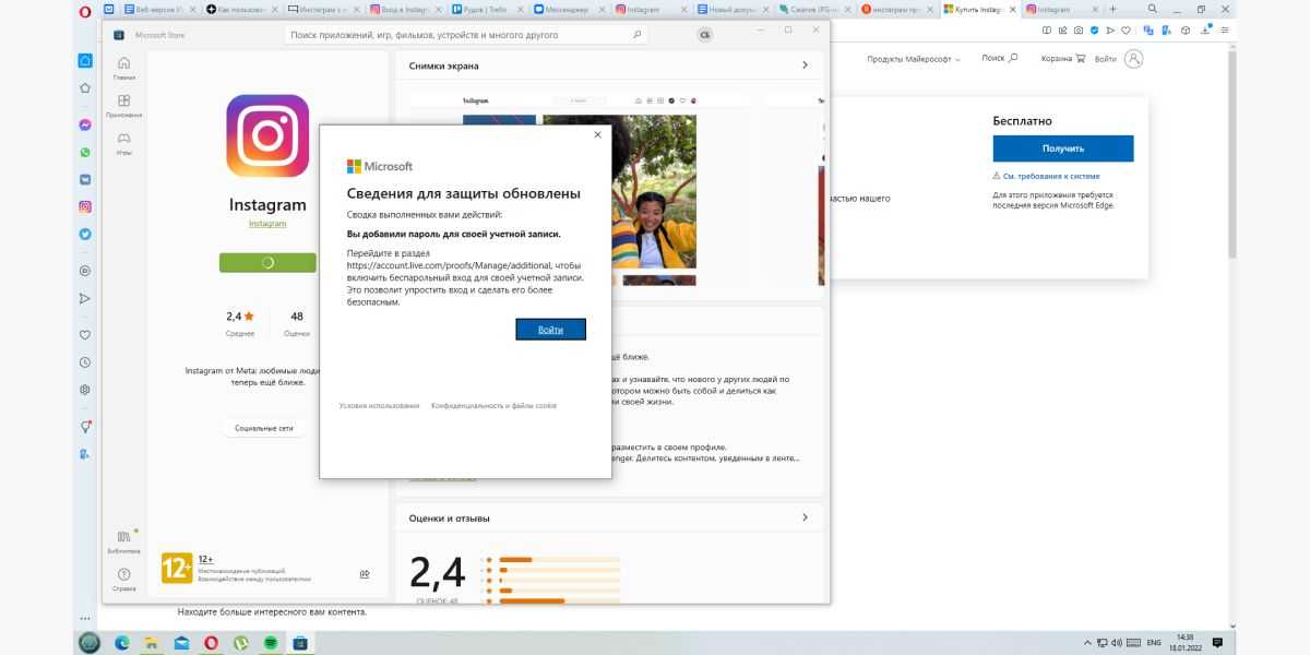Сведения для защиты обновлены, и идет скачивание приложения Инстаграма*.