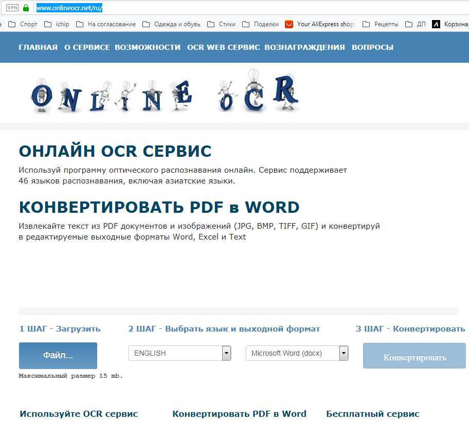 Convertio умеет распознавать текст на многих языках и конвертировать его в DOC для работы с Word. Взаимодействует с различными форматами изображений. В режиме бесплатного использования можно отсканировать до 10 фотографий.