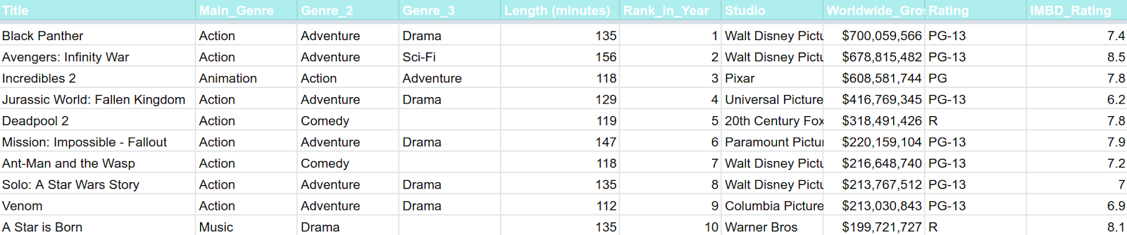In your new sheet, you should see the following result: